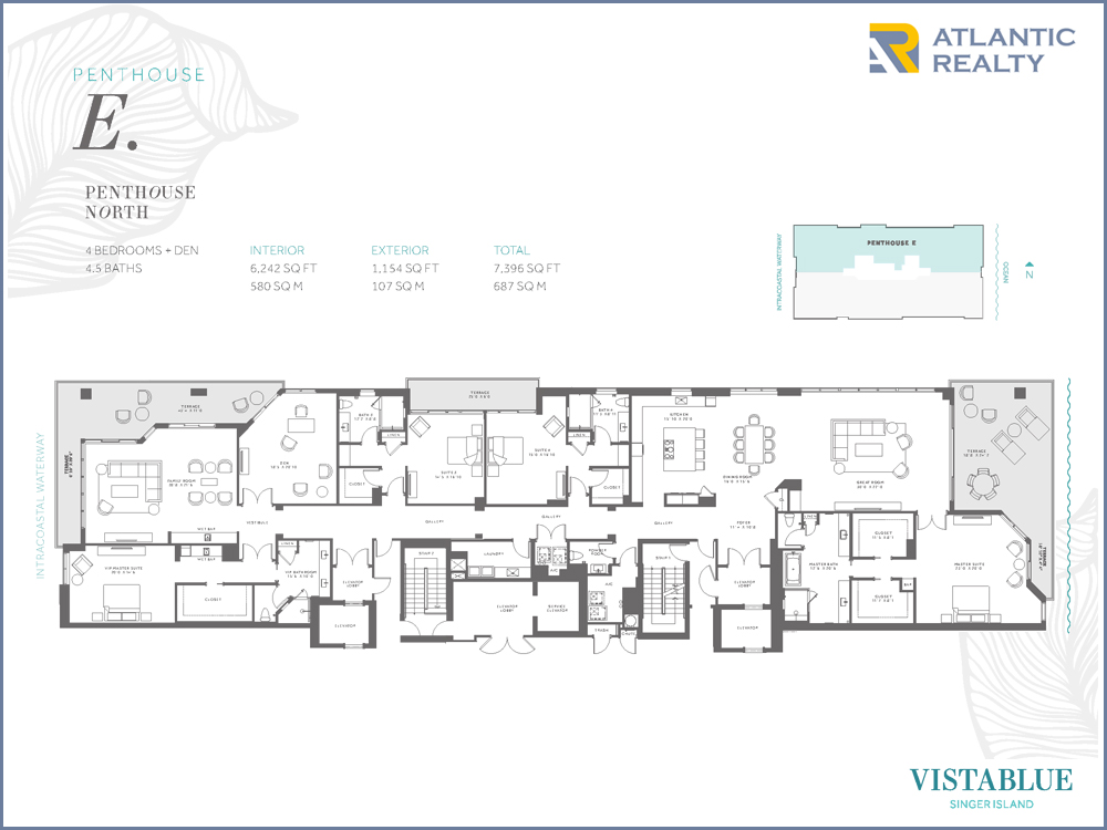 VistaBlue Singer Island – Boutique oceanfront property, limited to 58 residences, with only 4 residences per floor, 3-4 bedrooms, den, oversized great-rooms, split-bedroom floor plans, terraces with panoramic views of Atlantic Ocean sunrises and Intracoastal Waterway sunsets and a backyard as big as the ocean itself.